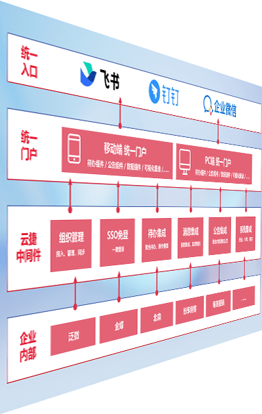 对协作平台提供支持服务,,支持企业应用与协作平台对接,,,,包含组织同步、、消息集成、、待办集成等。。。支持目前主流的协作平台:钉钉、、企微和飞书。。。。
